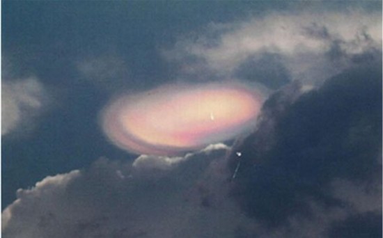 神秘彩光在空中形成一個(gè)甜甜圈,由一名退役的皇家空軍官員拍攝。照片隨后交給其負(fù)責(zé)調(diào)查UFO事件的上司。