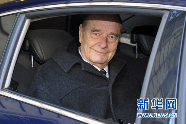 3月7日,在法國巴黎,法國前總統雅克·希拉克乘車離開辦公室。