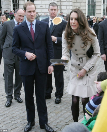 在廚房里面拋薄餅可能是常事,但是對第三次正式露面的準王妃凱特·米德爾頓(Kate Middleton)來說,站在大馬路中間拋薄餅,手抖一下則是可以體諒的。據英國《每日郵報》報道,英國威廉王子和未婚妻凱特突然到訪北愛首府貝爾法斯特(Belfast),并在星期二(8日)“薄餅日”的慈善募捐活動上秀了一把廚藝:翻拋薄餅。