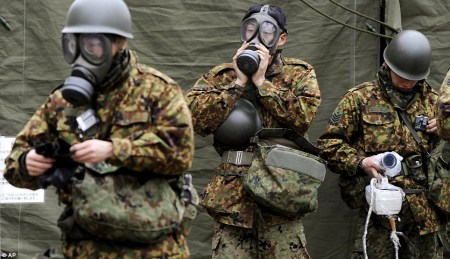 士兵全副武裝清除日本核電站泄漏出的輻射物質