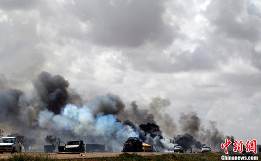 3月20日,班加西附近,忠于卡扎菲的武裝力量裝備遭遇聯(lián)軍襲擊。