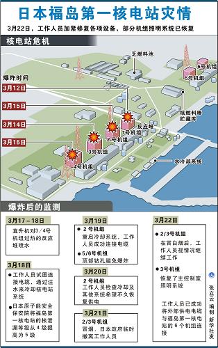消防員和自衛(wèi)隊員當天也繼續(xù)利用特殊泵車對4號機組的乏燃料池注水降溫。同時,3號和4號機組的照明系統(tǒng)目前已部分恢復,一旦主控制室重新投入使用,工作人員就可采取更有針對性的措施進一步穩(wěn)定受損機組的狀況。但在接通電源的作業(yè)中還是出現(xiàn)了兩名工作人員受傷的情況,他們目前已被送往醫(yī)院治療。