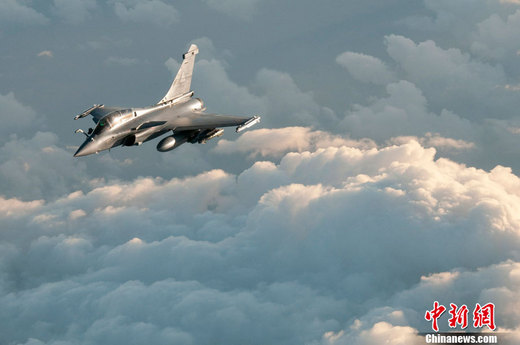當(dāng)?shù)貢r(shí)間3月19日,一架法國(guó)陣風(fēng)戰(zhàn)機(jī)攻擊利比亞期間接近一架空中加油機(jī)進(jìn)行加油作業(yè)。