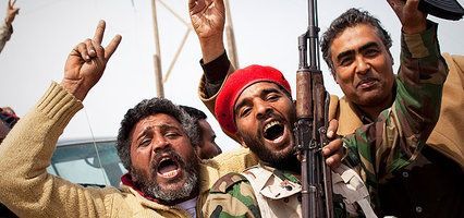 興高采烈的利比亞反對派武裝人員
