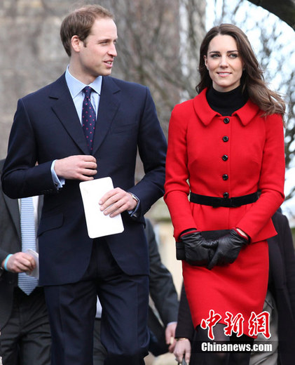 資料圖:2月25日,英國(guó)威廉王子和未婚妻凱特·米德?tīng)栴D訪問(wèn)蘇格蘭圣安德魯斯大學(xué)。