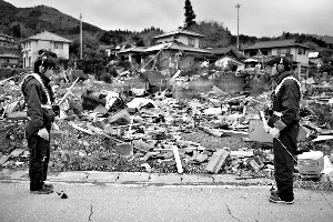 4月4日,日本巖手縣大船渡,供水系統調查員正在探測地下水泄漏情況。