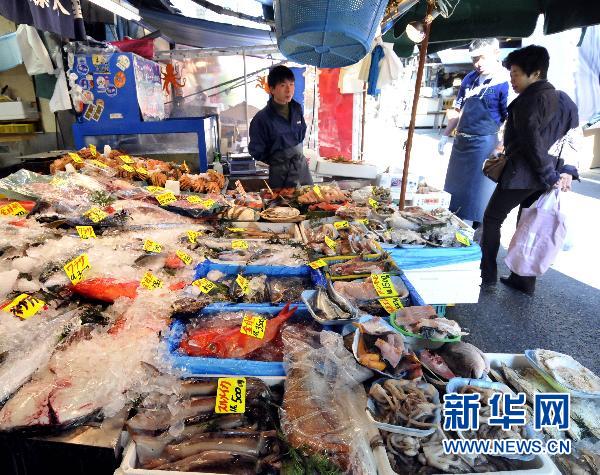4月5日,賣家在日本首都東京一家海鮮攤上招攬顧客。日本茨城縣漁業(yè)協(xié)會5日宣布,從4日在北茨城市附近海域捕撈的玉筋魚幼魚體內(nèi)檢測出放射性銫達到每千克526貝克勒爾,超過食品衛(wèi)生法放射物暫定標準值設定的每千克500貝克勒爾。這是首次從魚類體內(nèi)檢測出放射性物質(zhì)超標。新華社/法新