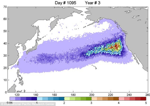 西雅圖的海洋學家Curtis Ebbesmeyer預計這些廢墟會在三年之內到達美國西海岸,稱海嘯襲來時,成千上萬的遇難者的遺體被沖入太平洋,這些殘肢會慢慢分解并沉入海底,但是有些部分,如仍然穿著旅游鞋的斷腳,則會繼續漂浮。
