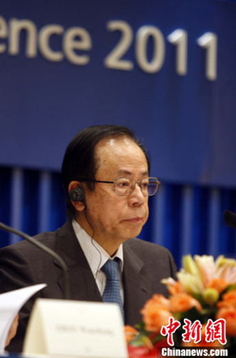 4月13日,博鰲亞洲論壇理事長、日本前首相福田康夫在博鰲亞洲論壇會員大會上,就日本因地震導致的核電站事故,向與會成員表示道歉。 中新社發 張宇 攝