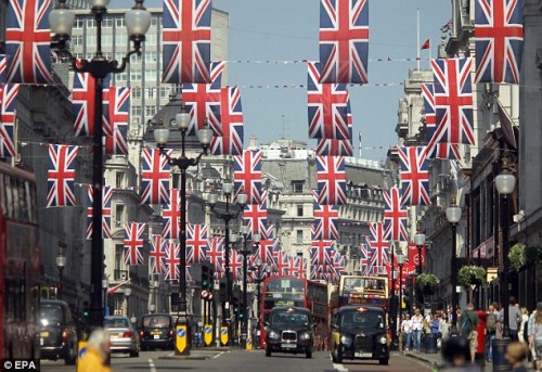 攝政街已經掛滿國旗迎接威廉王子大婚