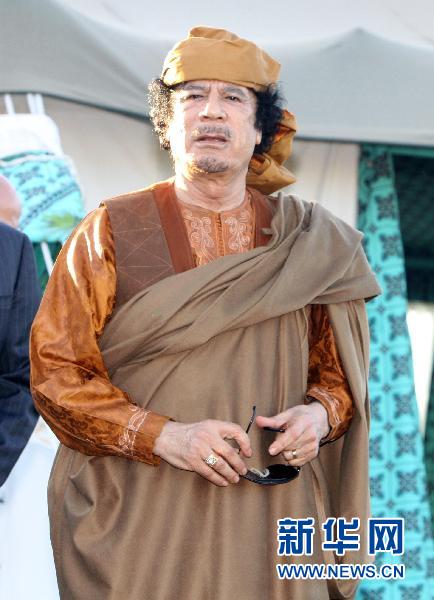 4月10日,在利比亞首都的黎波里,利比亞領導人卡扎菲會見非洲聯盟(非盟)關于利比亞問題的專門委員會成員。新華社發