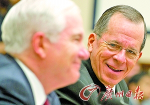 資料圖片:羅伯特-蓋茨和邁克-馬倫(右)向國會眾議院軍事委員會和參議院軍事委員會作匯報(bào)。