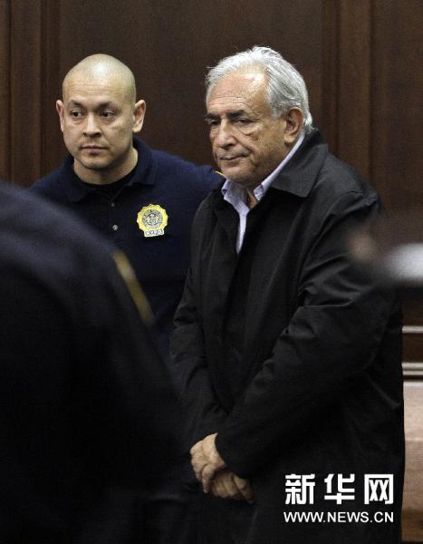 5月16日,國際貨幣基金組織總裁多米尼克·斯特勞斯-卡恩(右)出席紐約曼哈頓刑事法院舉行的聽證會。斯特勞斯-卡恩當天在紐約首次出席法庭聽證會。法官認為斯特勞斯-卡恩有潛逃風險,禁止他被保釋,并宣布他在5月20日再次出庭前被繼續關押在監獄里。因涉嫌性侵犯紐約索菲泰爾酒店女服務員,斯特勞斯-卡恩15日被指控“刑事性行為、強奸未遂和非法監禁”等多項罪名。新華社/美聯