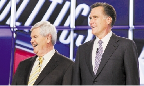 金里奇(左)和羅姆尼 新華社資料照片