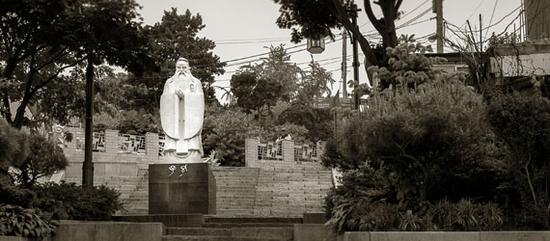 據韓國《中央日報》網站1月28日報道,1月28日上午,在仁川市中區北城洞唐人街,走上十九世紀80年代用以劃分日本人和中國人聚集地的清日租界階梯,階梯頂端用花崗巖制作的一尊巨型雕像映入眼簾。