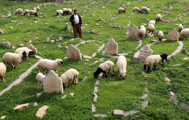 圖為摩蘇爾大壩附近,當地人在底格里斯河岸放羊。新華/法新。