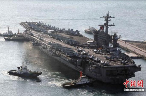資料圖:曾為本拉登操持海葬的美國(guó)核動(dòng)力航空母艦“卡爾蜠森號(hào)”