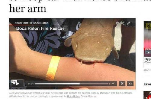 臺(tái)灣《中時(shí)電子報(bào)》網(wǎng)站5月16日?qǐng)?bào)道,一名23歲的女游客周末前往佛羅里達(dá)州波卡雷頓海灘游泳,不料卻遭到一頭小鯊魚攻擊,小鯊魚緊咬著女游客的手臂,怎么樣都甩不開,就算離開水里上岸了,依舊不肯松口,救護(hù)人員也束手無策,只好將這一人一鯊一起送往醫(yī)院。