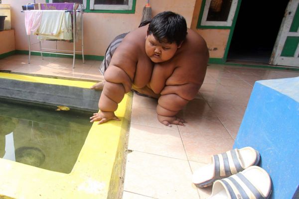 據(jù)臺灣東森新聞云網(wǎng)站援引《每日郵報》報道,印尼西爪哇省10歲男童阿里亞出生時和一般嬰兒無異,然而5歲生了一場重病后,體型就產(chǎn)生了巨大的變化,加上胃口異于常人,一天得食用5餐以上,沒想到短短數(shù)年,體重一發(fā)不可收拾飆至192公斤,是同齡孩子的4-5倍,這讓他的父母親相當困擾。