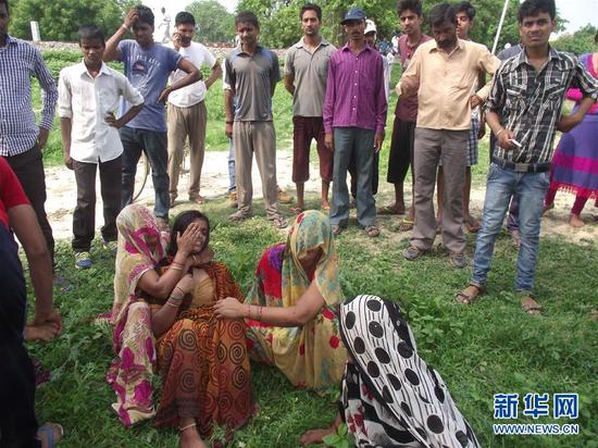 這是7月25日在印度北方邦珀多希的事故現場拍攝的著火的校車。據一名當地警方官員說,一輛校車與一列疾馳的火車25日早晨在珀多希的一個無人監控道口相撞,造成至少7名兒童死亡,12名兒童受傷。