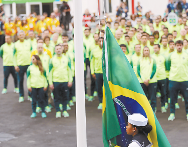7月31日,巴西代表團在奧運村廣場舉行升旗儀式