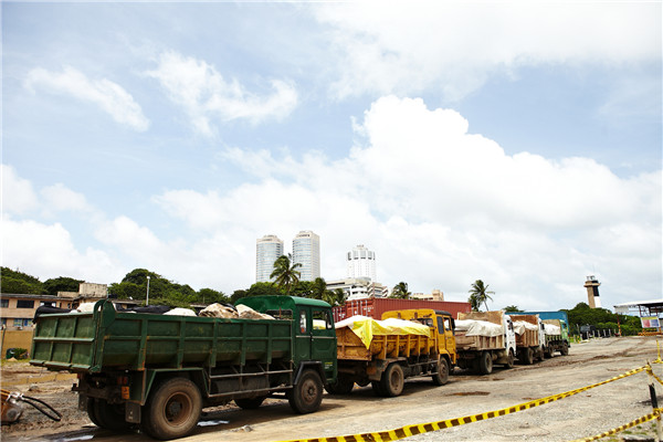 今年6月10日,科倫坡港口城停工令解除后首批石料運抵施工現場