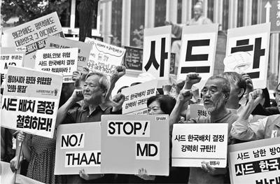 韓國抗議部署“薩德”的行動浪潮已持續1個多月。圖為首爾光華門廣場,韓國民間團體舉行示威活動,要求韓美當局撤回部署“薩德”決定。本報記者 陳尚文攝