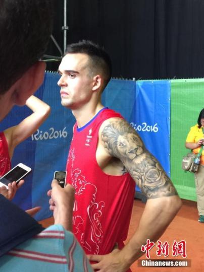 資料圖:2016里約奧運羽毛球混雙小組賽首輪比賽,圖為愛德考克的獅子文身吸引媒體鏡頭。中新網記者 盧巖 攝
