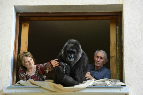 法國里昂一對夫婦收養了一只雌性大猩猩迪吉。(圖片來源:法新社)