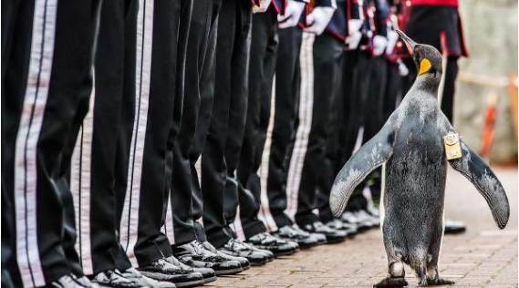 這只帝企鵝已經(jīng)是國王衛(wèi)隊(duì)的名譽(yù)團(tuán)長、部隊(duì)的吉祥物,它還在2008年被授予爵士頭銜。
