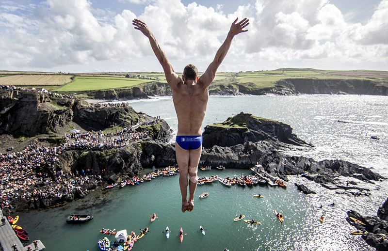 當?shù)貢r間9月10日,英國威爾士的彭布魯克郡迎來紅牛懸崖跳水世界系列賽,吸引了眾多喜愛挑戰(zhàn)極限的勇士和2000多名觀眾。