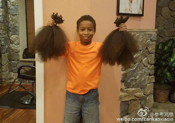 最近,托馬斯將自己的長頭發剪了下來,足足有16厘米長,可以做出三套假發。這讓托馬斯感到非常開心。