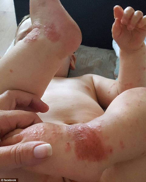 【環球網綜合報道】據英國《每日郵報》9月21日報道,英國14個月大的嬰兒奧利弗(Oliver)感染皰疹病毒,腿上長滿皮疹。醫生診斷,奧利弗或許是因為與唇皰疹患者接觸過而感染了病毒。