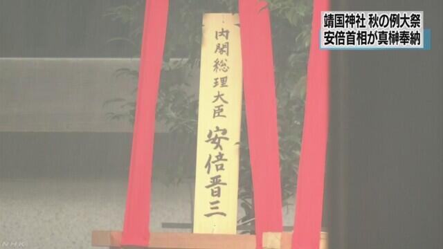 【環球網報道 記者 王歡】據日本NHK電視臺10月17日報道,日本首相安倍晉三17日在秋季例行大祭開始之際,以“內閣總理大臣”的名義,向供奉有“二戰”甲級戰犯的靖國神社供奉了名為“真榊”的祭品。