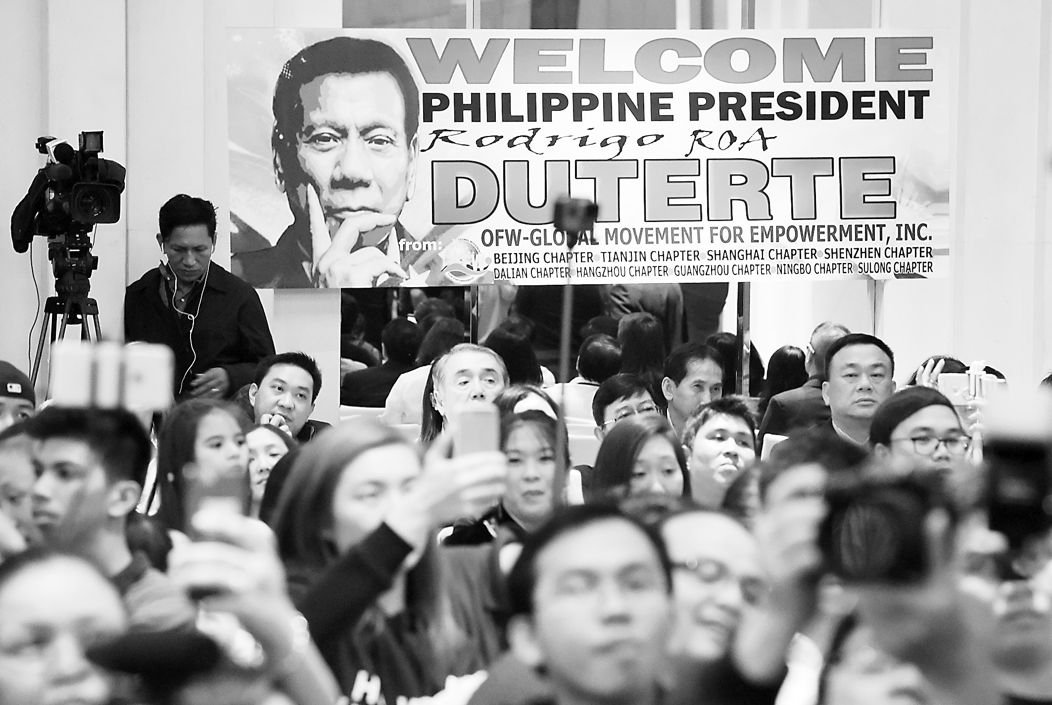 圖說:19日,杜特爾特在北京會見在華工作、生活的菲代表。