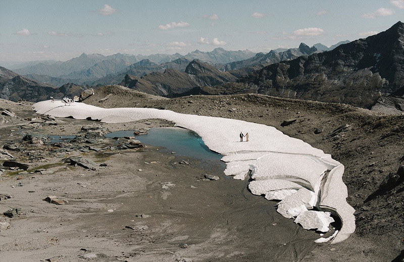 近日,新西蘭攝影師米基 羅斯(Mickey Ross)在瓦納卡鎮附近的一座雪山上為一對新婚夫婦拍攝婚紗照,以延綿的白雪和冰層為背景,將婚紗照拍出了新高度,真的是美哭了!