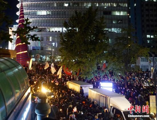 近兩萬(wàn)名韓國(guó)民眾及民間團(tuán)體人士在首爾市中心舉行燭光集會(huì),譴責(zé)“親信干政事件”給韓國(guó)社會(huì)帶來(lái)的不良影響,要求總統(tǒng)樸槿惠對(duì)此事負(fù)責(zé)。中新社記者 吳旭 攝