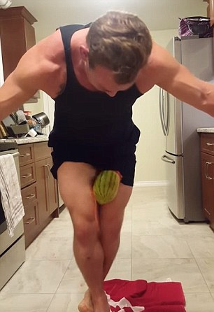 在這段時長20多秒的視頻中,馬特雙手撐著櫥柜,大腿間夾了一個小西瓜,雙腿作胡桃夾狀。隨后,僅用5秒的時間,他便將西瓜夾爆,畫面相當驚人。