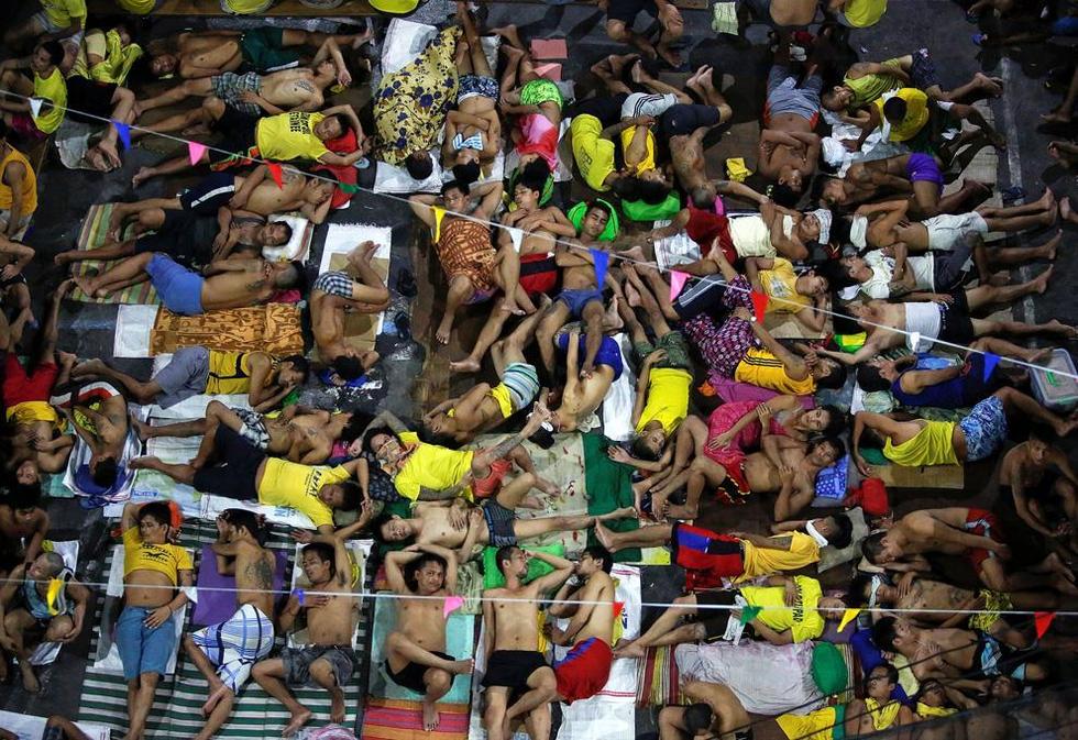 據外媒報道,菲律賓馬尼拉奎松城的一所監獄現在變得異常擁擠,大廳和樓梯間遍地睡著囚犯,每150個人分享一個廁所。比起外面正在上演的致命的毒品戰爭,這里已經算是安全的避難所了。
