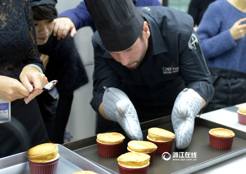 11月26日,位于杭州紫萱路的星曜堂國際廚藝學院請來三位米其林三星大廚,手把手教大家制作法餐和甜品。米其林星廚導師與大家一起分享了法式料理、法式烘焙的食材配方和烹飪方式。(浙江在線記者 鐘昊 錢璐斌 攝)