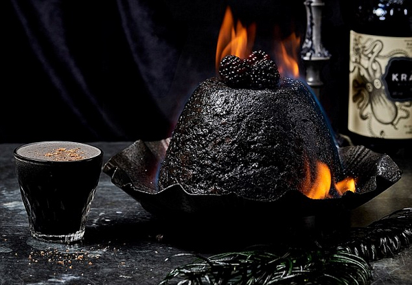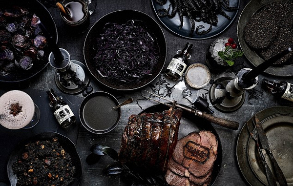 據悉,這套黑色圣誕晚餐是朗姆酒品牌Karken推出的。他們打算12月5日到7日在英國倫敦舉辦黑色圣誕節主題活動。