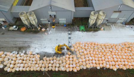 另一方面,日本青森縣正在檢出H5型高致病性禽流感病毒的青森市北部農(nóng)場附近持續(xù)作業(yè),填埋被撲殺的食用鴨及從飼養(yǎng)設(shè)施收集的糞便。設(shè)施消毒工作同時展開,力爭在1日完成農(nóng)場內(nèi)防疫措施。