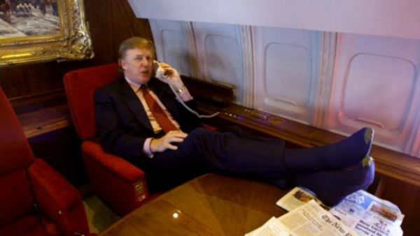 2000年,特朗普在自己的私人飛機上打電話。(圖片來源:英國廣播公司網站)