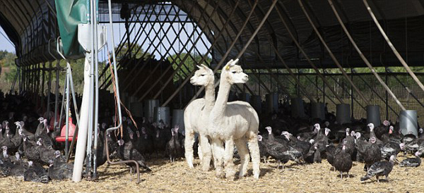 據悉,農場主湯姆·卡帕斯(Tom Copas)已經養雞58年了。他采用自由放養法,讓數萬只火雞在櫻桃園和草地上隨意活動,因而常會遭到狐貍的迫害。于是,湯姆利用羊駝天生的警覺性來保護火雞群。
