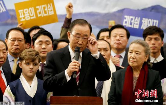資料圖:當(dāng)?shù)貢r(shí)間2017年1月12日,韓國(guó)仁川,卸任的聯(lián)合國(guó)前秘書長(zhǎng)潘基文返回韓國(guó)。在回國(guó)之后,潘基文在仁川機(jī)場(chǎng)發(fā)表對(duì)國(guó)民信息,他被認(rèn)為是下屆韓國(guó)總統(tǒng)的有力競(jìng)爭(zhēng)者。