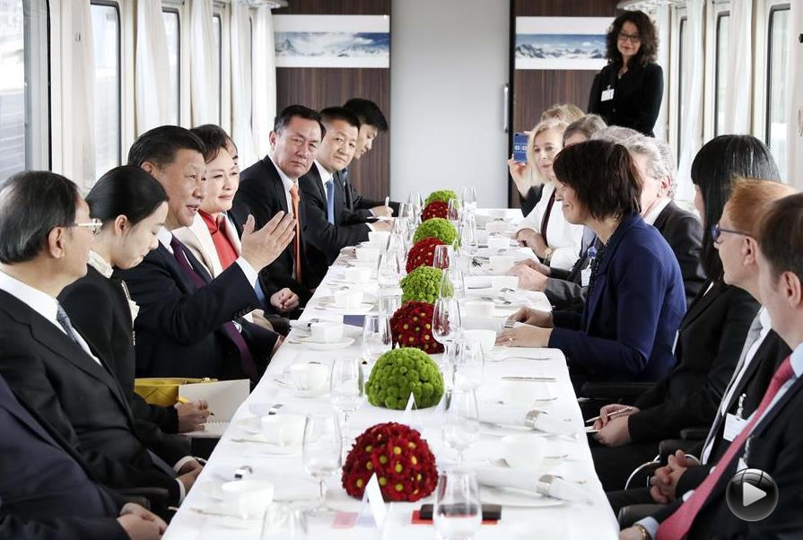 當地時間1月15日,國家主席習近平在瑞士聯邦主席洛伊特哈德陪同下,乘坐瑞士政府專列自蘇黎世前往瑞士首都伯爾尼。在專列行進過程中,習近平和夫人彭麗媛受洛伊特哈德主席夫婦邀請,在輕松愉快的氛圍中品茶暢談。