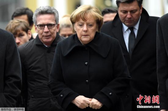 資料圖:當地時間2016年12月20日,德國柏林,德國總理默克爾前往發生恐襲的圣誕市場,獻花悼念遇難者。