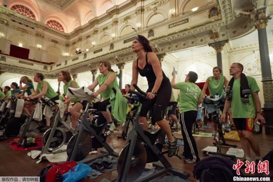 主辦單位準備了一個注滿水的大型水缸,里面放置一臺可計算前進距離的健身自行車。萊烏奇先深呼吸,然后進入水缸拼命踏了約4分鐘。