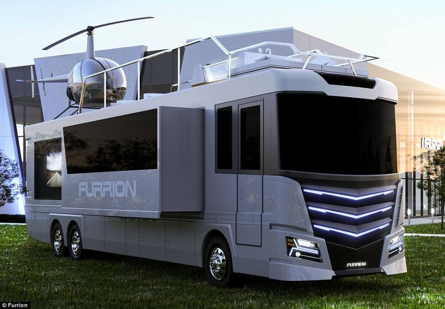 據英國《每日郵報》1月24日報道,如果有一款房車可以吸引露營愛好者之外的人,那它一定是這輛型號為Elysium的大家伙了。Elysium長13.7米,寬2.4米,車內音響、烹飪、娛樂等各類設施一應俱全,車頂還有浴缸和一架雙座直升機,可以說它就是一個裝著輪子的家。當然了,要得到它也不是那么容易,其售價高達250萬美元(約1714萬人民幣)。