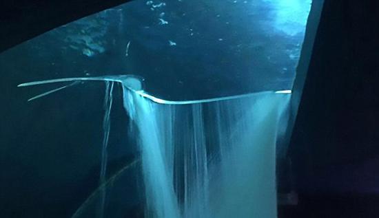 這家水族館在閉館期間,鯊魚水箱突然迸裂,導(dǎo)致箱內(nèi)的13條鯊魚和其他魚類隨著大水涌出,灑在街道上,造成了公眾恐慌和路面擁堵。